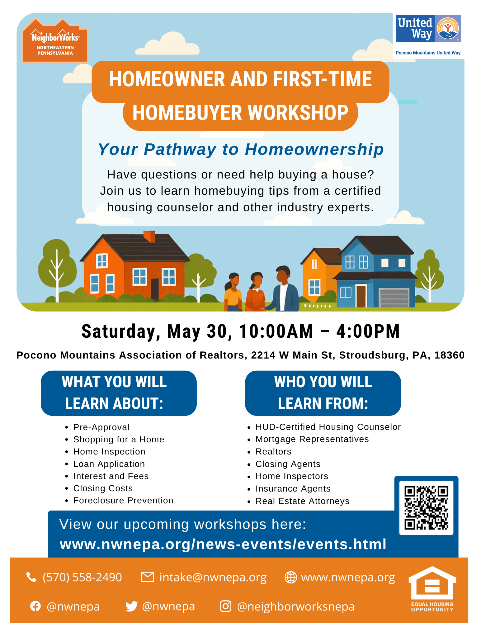 Learn everything you need to know about purchasing your first home, from financing and pre-approvals to inspections and closing costs. Hear from realtors, home inspectors, insurance agents, and other experts. This workshop is free, but registration is required.